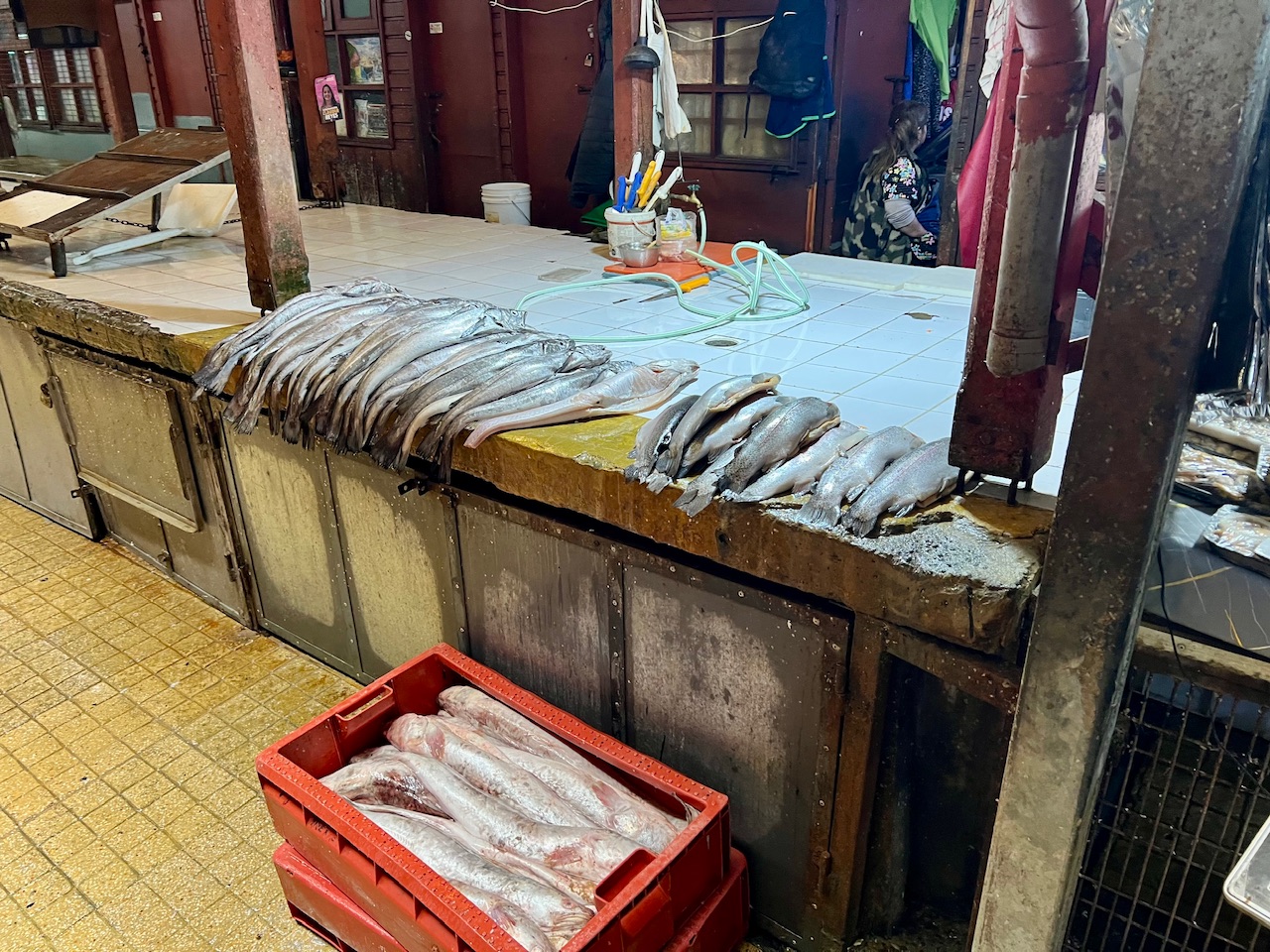 Auch bei wenn die meisten der kleinen Stände bereits geschlossen sind, erhält man doch einen schönen Einblick. Besonders interessant ist die Tatsache, dass auf dem Teil des Marktes auf dem Fisch angeboten wird, nicht nur Menschen und Hunde die Gänge entlang schleichen, sondern auch gerne mal ein riesiger Seebär. Die sind hier sogar so frech, dass sie in die Mülltonnen klettern, in denen die Fischabfälle weggeschmissen werden. Die niedlich aussehen Tierchen, wiegen ausgewachsen gern mal um die 300 Kilo. Da wird einem schon etwas anders, wenn die in ein paar Zentimetern Entfernung an einen vorbei schnaufen.
