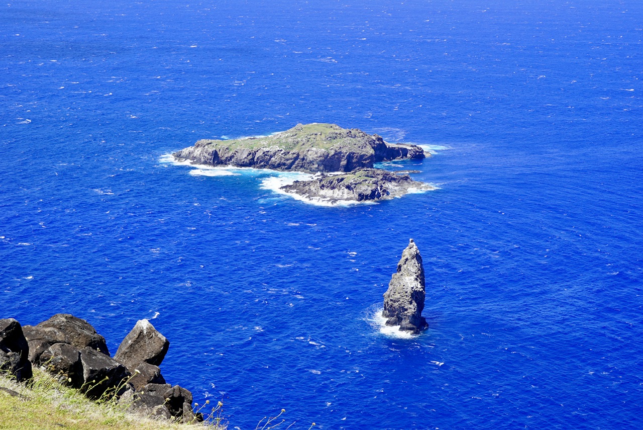 Unser erster Stop ist Tahai. Ein Ort direkt auf der anderen Seite des Hafens, an dem noch fünf Steinfiguren der ersten Generation stehen und auf die Insel blicken. Man unterscheidet die Figuren in verschiedene Generationen. Während die erste Generation auf vielen Südseeinseln zu finden sind, wurde die Technik zur Schaffung der Figuren auf der Osterinsel immer weiter entwickelt, und so gibt es nun also auch Figuren in bestimmter Technik, die nur hier zu finden sind.