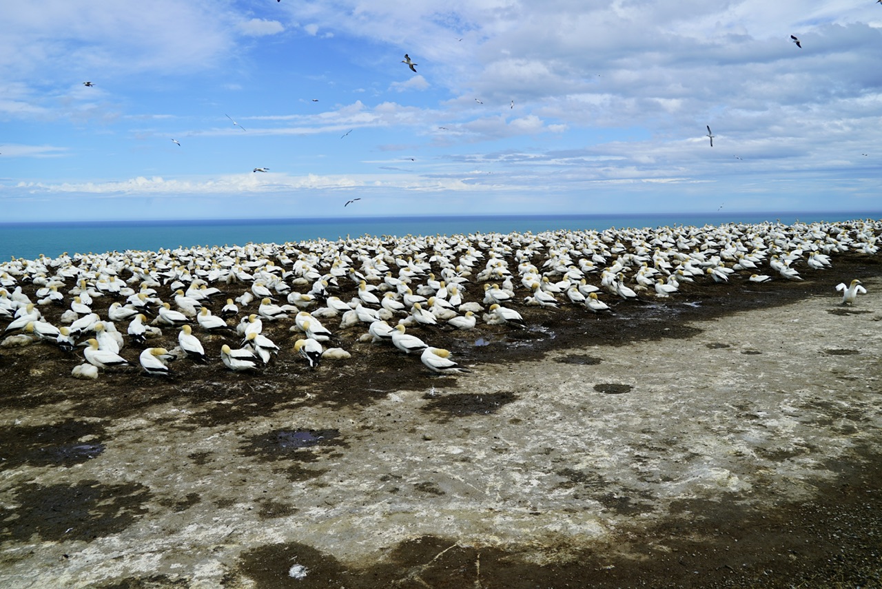 Cape Kidnappers ist berühmt für seine spektakulären Felsformationen, die sich dramatisch aus dem Meer erheben, und als Heimat einer der weltweit größten Tölpelkolonien. Als wir näher kamen, konnten wir die ersten Vögel bereits aus der Ferne sehen. Mit jedem Meter den wir näher an das Kliff fahren entfaltete sich das ganze Ausmaß – hunderte Tölpel segelten majestätisch in der Luft oder ruhten auf den Felsen.