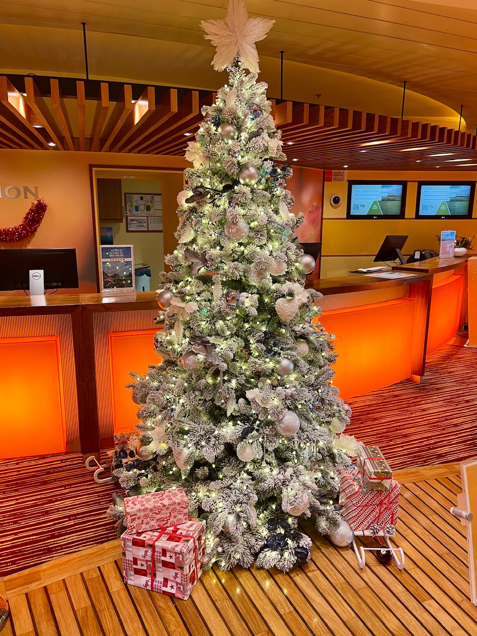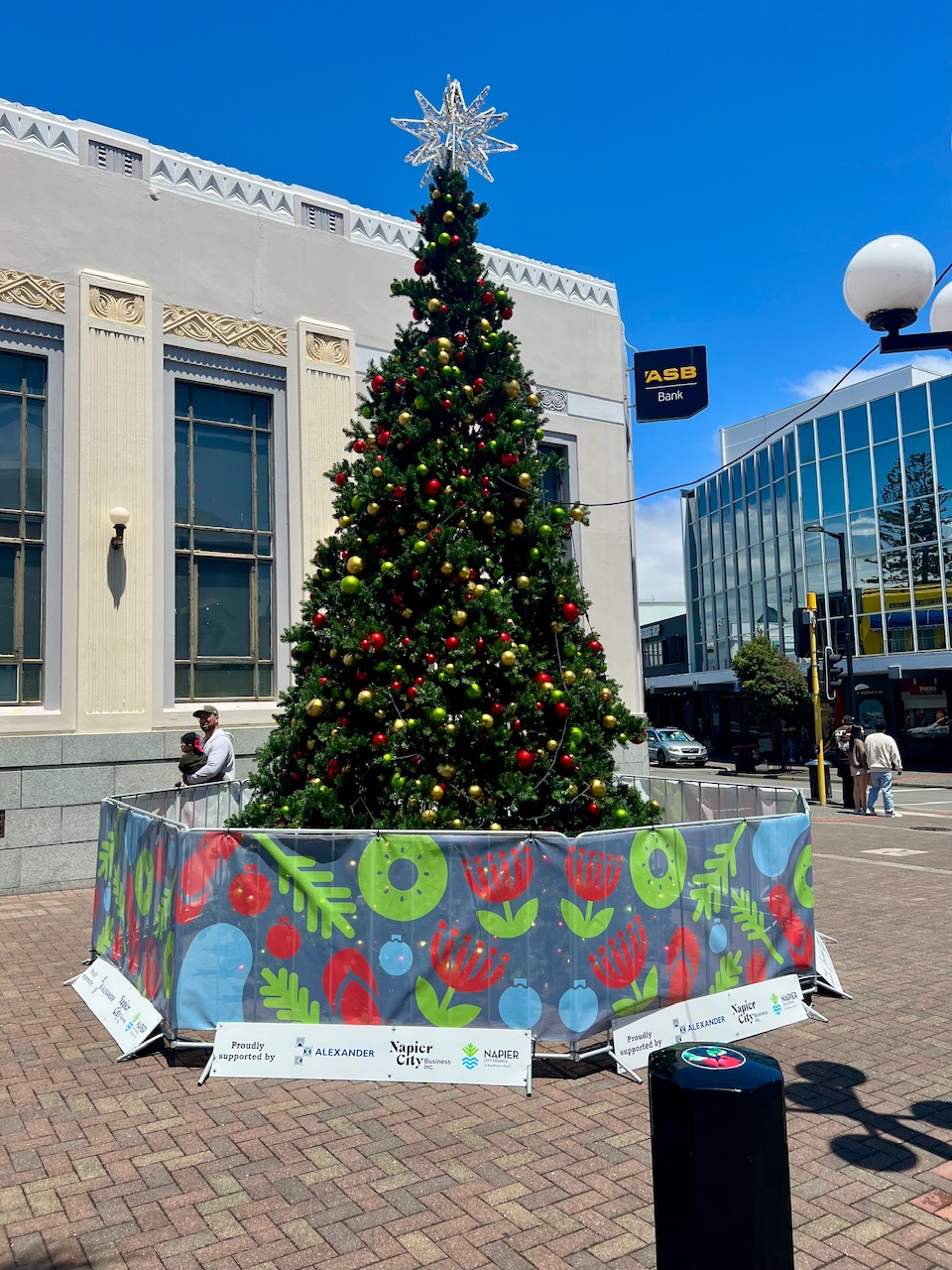 Nachdem wir zunächst den tollen Weihnachtsbaum bestaunt haben, und uns anschließend einen Ersatz für unser Handyladekabel besorgt haben, drehen wir noch ein paar Runden durch die Innenstadt. Und obwohl es ja nur ein paar Tage vor Weihnachten ist, ist es eine nette entspannte Atmosphäre. Mittlerweile kommt sogar die Sonne raus, die am Morgen während unseres Einlaufens noch gar nicht zu sehen war.