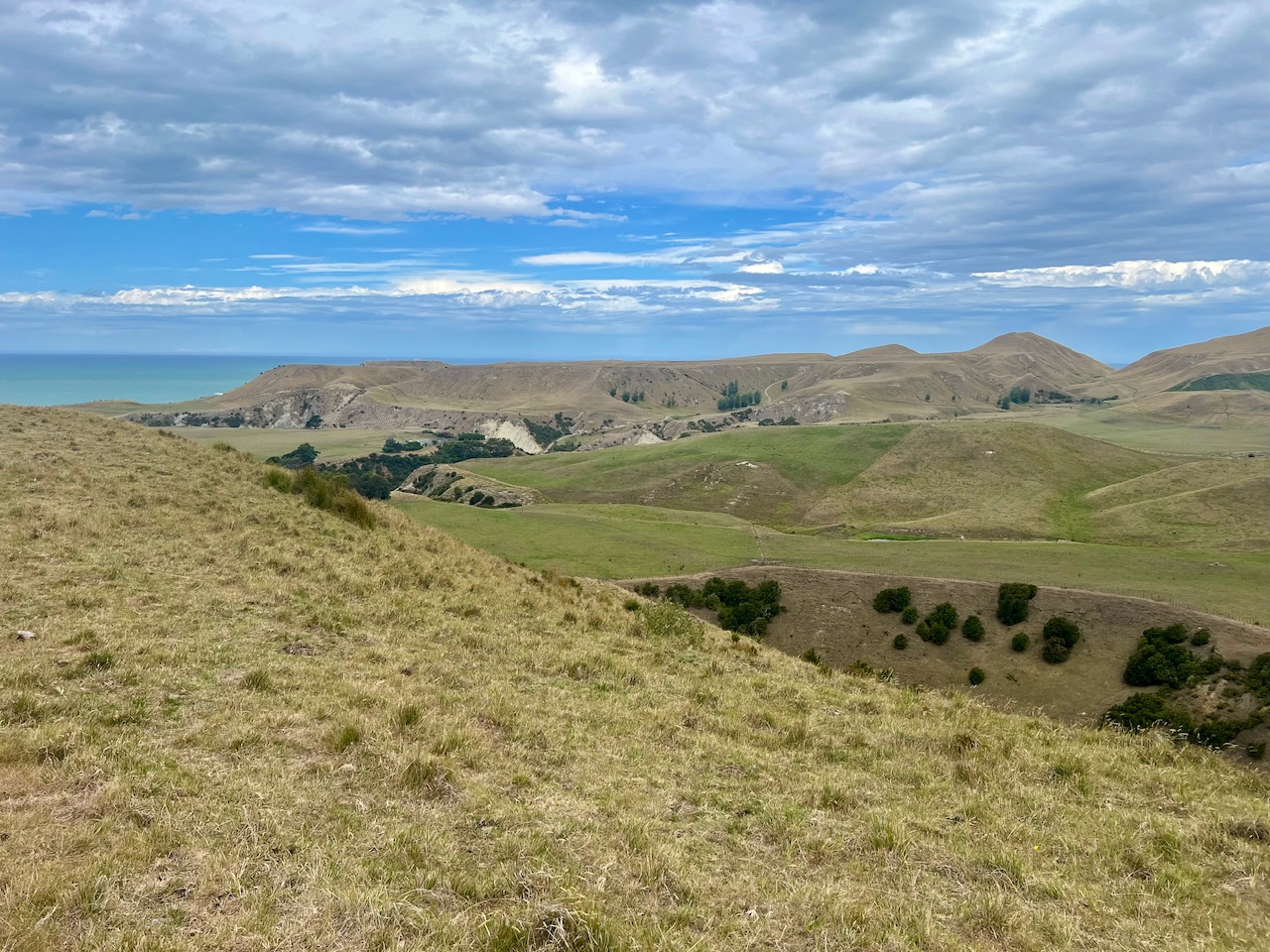 Die Tour begann mit einer landschaftlich reizvollen Fahrt entlang der Küste, vorbei an grünen Weiden, steilen Klippen und weitläufigen Feldern, die sich bis zum Horizont erstrecken. Schon auf dem Weg boten sich beeindruckende Ausblicke auf den Pazifik, auf dem wir ja gerade noch rumgeschippert sind.
