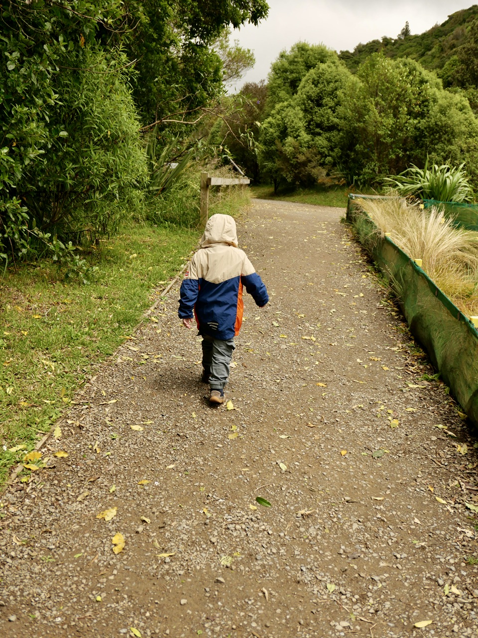 Natürlich wissen wir, dass wir heute keine Kiwis sehen werden, auch wenn angeblich hunderte auf diesem Gelände leben. Aber wenn man am Tag nach nachtaktiven Tieren sucht, ist die Pleite natürlich irgendwie vorhergesagt. Das heißt aber nicht, dass wir nicht andere spannende Tiere sehen und entdecken können. Das ganze Areal ist mit vielen Wanderwegen durchzogen, wenn man möchte hat man hier die Möglichkeit, 32 Kilometer am Stück zu laufen. Das ist für uns mit insgesamt sechs Kindern in der Gruppe natürlich eher nicht so optimal. Wir entscheiden uns also für einen Kompromiss und laufen jeweils zwei Wege zur Hälfte.