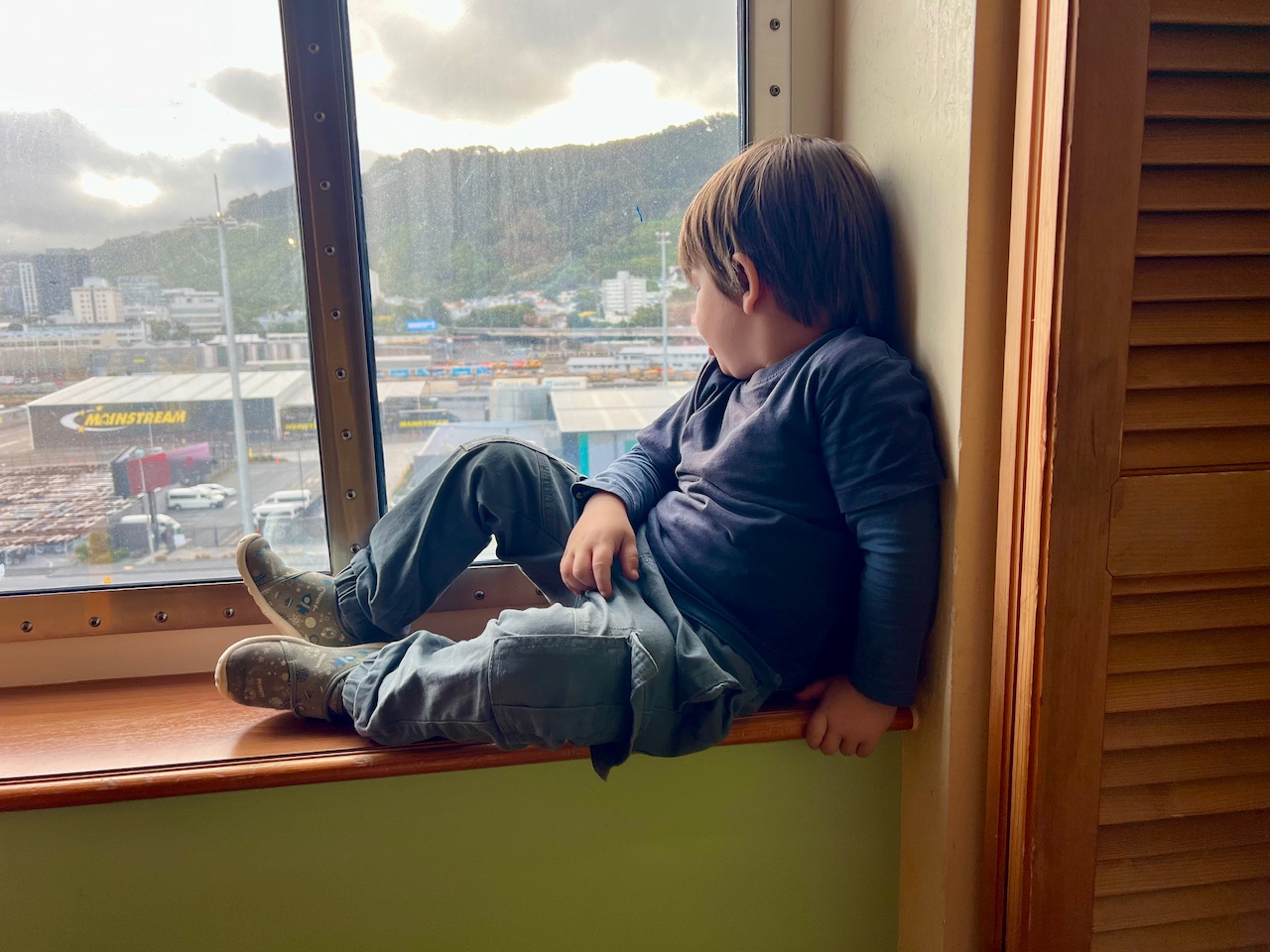 Es ist soweit, wir landen in der Hauptstadt Neuseelands: Wellington. Damals waren wir hauptsächlich hier, um mit der Inter-Islander Fähre auf die Südinsel zu fahren. Passend dazu werden wir heute beim Öffnen der Gardinen von eben dieser Fähre begrüßt. Heute Nacht machen wir uns dann auch auf den Weg auf die Südinsel - weitaus komfortabler als auf der Fähre. Aber das ist ja noch Zukunftsmusik.