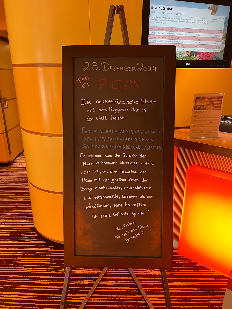 Es ist jetzt jeden Morgen ein bisschen schwerer. Mit der Ankunft heute in Picton sind wir auf der wunderschönen Südinsel Neuseelands angekommen, aber eben auch an unserem vorletzten Hafen.