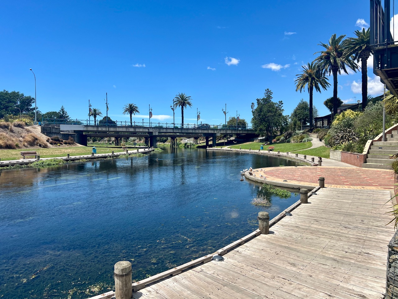 Da wir hervorragendes Wetter hatten und bei der Durchfahrt durch den Ort schon den innerstädtischen Fluß sehen konnten machten wir uns dahin aus.