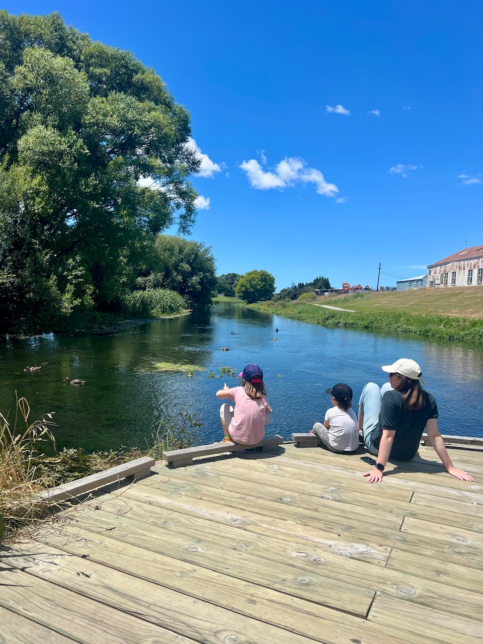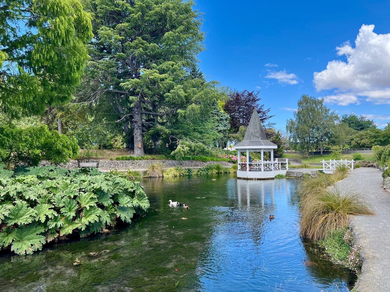 Hier gibt es einen grandiosen Spielplatz mit angeschlossenem kleinen botanischen Garten. Der Fluss von eben fließt hier auch durch, wenngleich er etwas kleiner ist. Wir verbringen hier gut eine Stunde. Lotti konnte sich am Ende sogar auf die große Rutsche mit dem schwierigen Aufstieg.