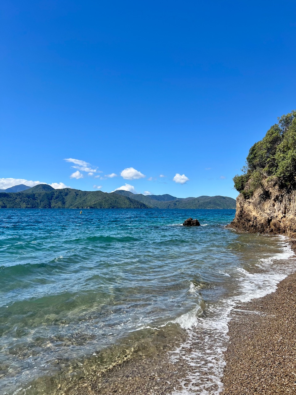 Wir stehen wie so oft in letzter Zeit ohne Wecker auf, auch wenn es heute mit 7:15 aufstehen etwas später ist als gewohnt starten wir gemütlich in den letzten Tag vor Weihnachten. Schon beim morgendlichen Gardinen öffnen werden wir von strahlend blauen Sonnenschein und dem zauberhaften Blick auf die neuseeländische Sound Landschaft begrüßt.