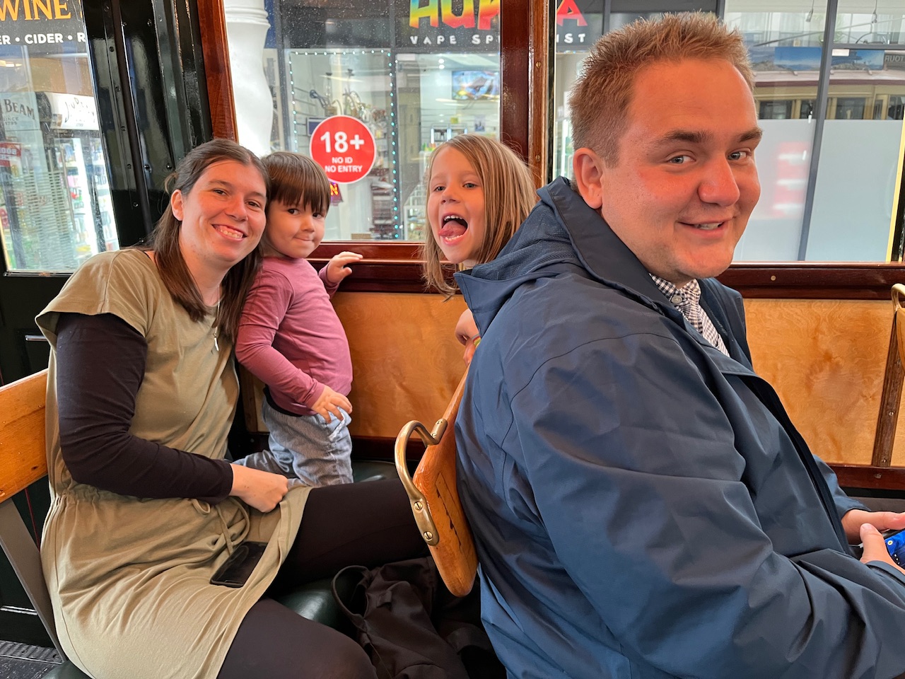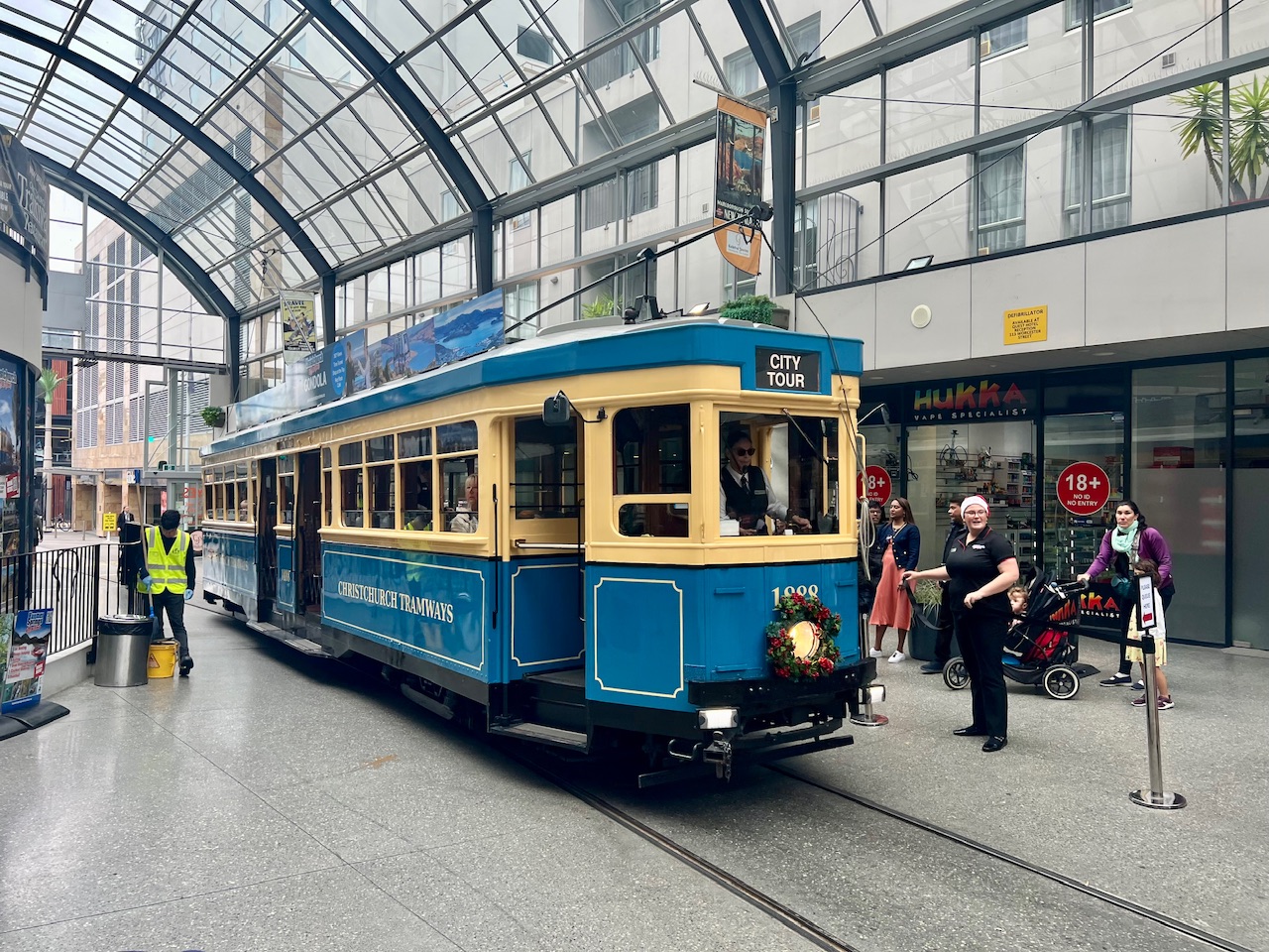 Wir kommen heute mit unserer schönen AIDA zu unserem letzten Landgang nach Christchurch - unglaublich. Da Christchurch aber bekanntlich nicht über eine Anbindung ans Meer verfügt, liegen wir im neuen Hafen von Lyttleton. Wir werden wie üblich mit einem Shuttlebus aus dem Hafen eskortiert und außerhalb wieder ausgespuckt. Nun ist das außerhalb noch immer 20 Minuten Autofahrt von der Innenstadt Christchurch entfernt. Gemeinsam mit unseren Freunden rufen wir jeder ein Uber, dass uns zur Tram Station bringen soll. Das Uber der anderen kommt...wir beobachten in der App, wie unser Fahrer in die entgegengesetzte Richtung fährt und nicht zu uns. Nach einer absurden Wartezeit stornieren wir die Fahrt wieder, da direkt vor uns ein Taxi hält. Dieses nehmen wir dann auch direkt und kommen so endlich an unserem Ziel an. Dirk hatte uns schon die Tickets gekauft und so konnten wir direkt in die nächste Tram.