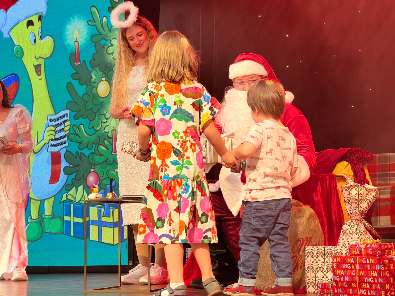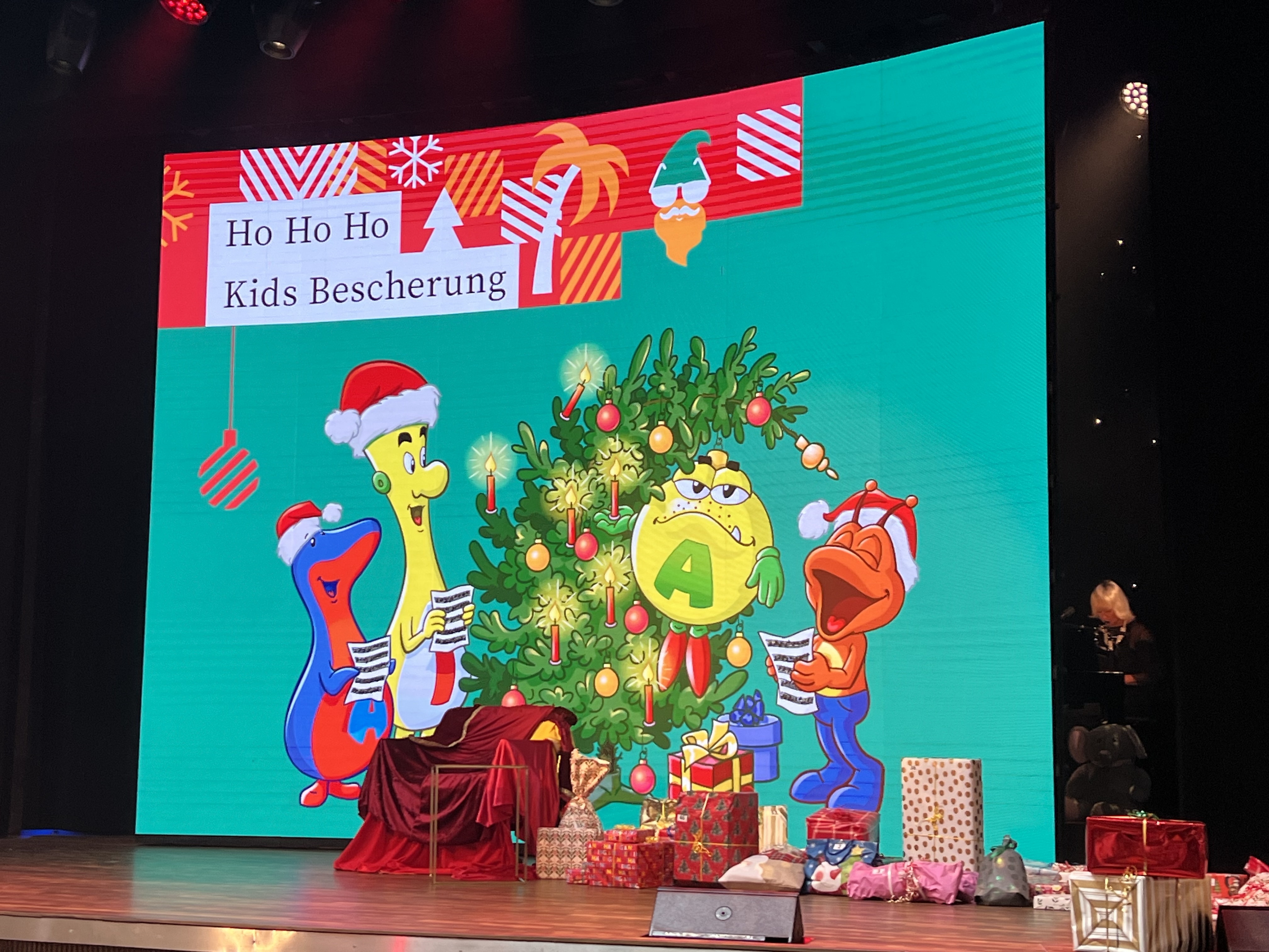 Die Bescherung war schön gemacht. Es wurde ein kleiner Film gezeigt, wie der Weihnachtsmann an Board gekommen ist. Im Anschluss stand er auf der Bühne und hat jedes Kind aufgerufen. Lotti und Theo gingen gemeinsam auf die Bühne und holten sich ihre Geschenke ab. Es folgte das große auspacken der Kinder im Theatrium. Die Freude war bei allen groß. Theo war außer sich über seine Modell-Aida. Auch auf der Kabine hatten die Helfer vom Weihnachtsmann noch ein paar Kleinigkeiten.