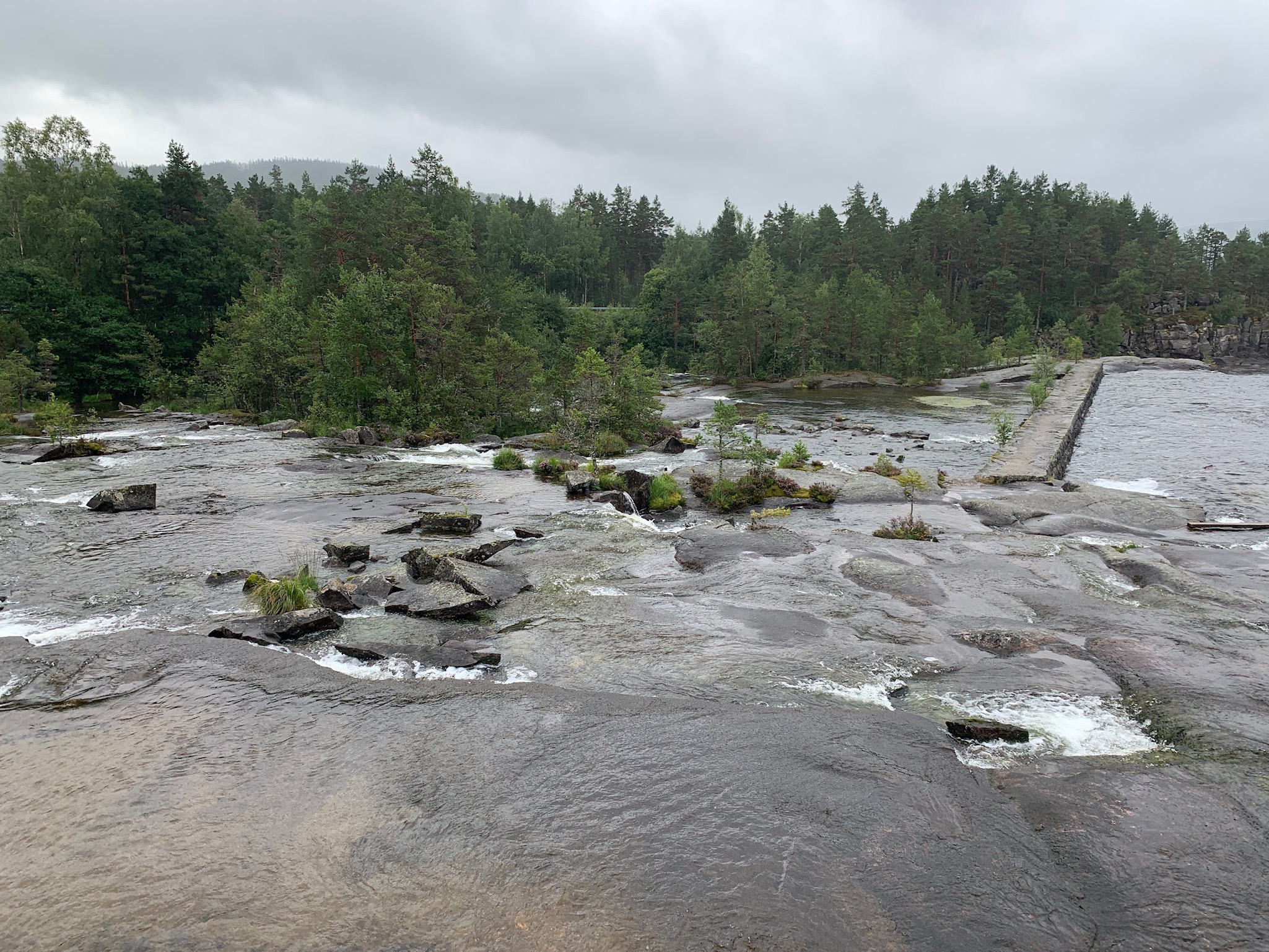 Wo wir gerade beim Thema Wellen sind: Unser erstes Ziel waren heute die örtlichen Stromschnellen. Die haben wir gestern schon bei unserer Ankunft passiert, haben sie aber aufgrund des Regens links liegen lassen. Heute nutzen wir am vormittag einen raren regenlosen Momente und fahren nochmal ein Stück zurück.