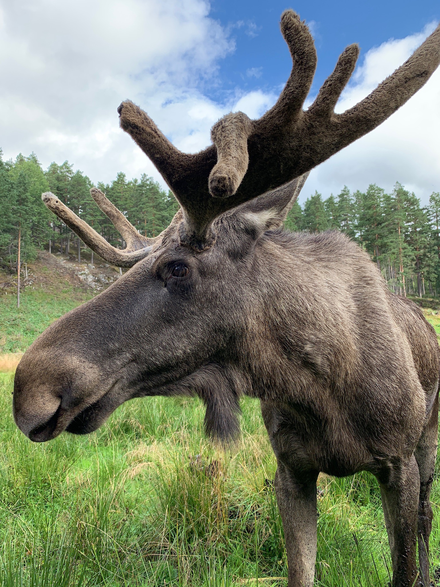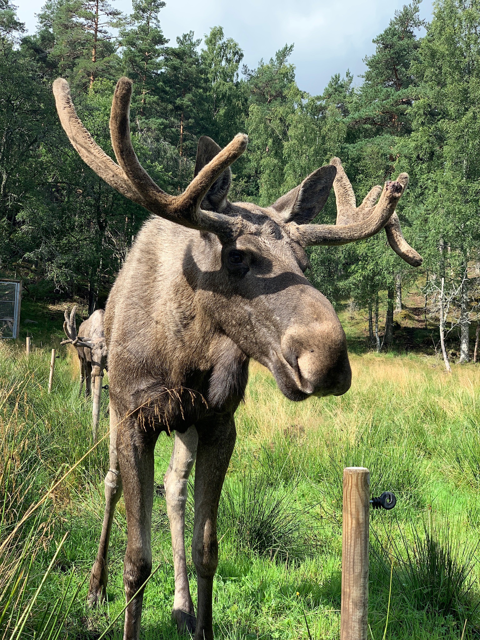 Nach einer kurzen Mittagspause für Lotti, widmen wir uns dem Hauptgrund für unseren langen Aufenthalt hier. Natürlich ist es einerseits für Lotti super, nicht zwei Tage hintereinander für längere Zeit im Wohnmobil zu sitzen, aber uns bleibt so Zeit für einen Besuch im Elchpark "Elktun". Der hat nämlich nur am Wochenende für 4 Stunden am Nachmittag geöffnet. Sehr praktisch für uns. Der Regen war auch schon länger nicht mehr zusehen, sogar die Sonne hat sich mal blicken lassen.