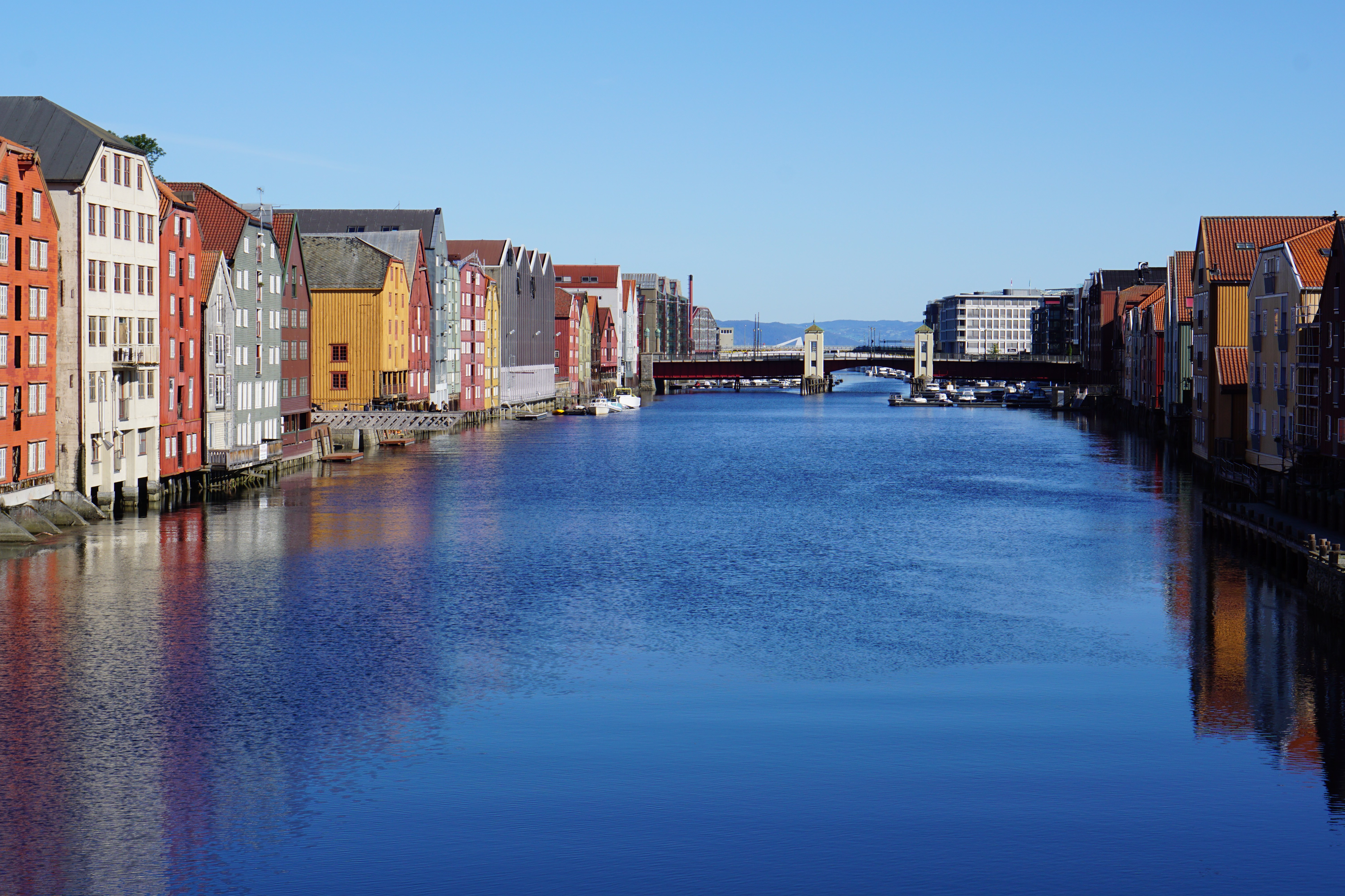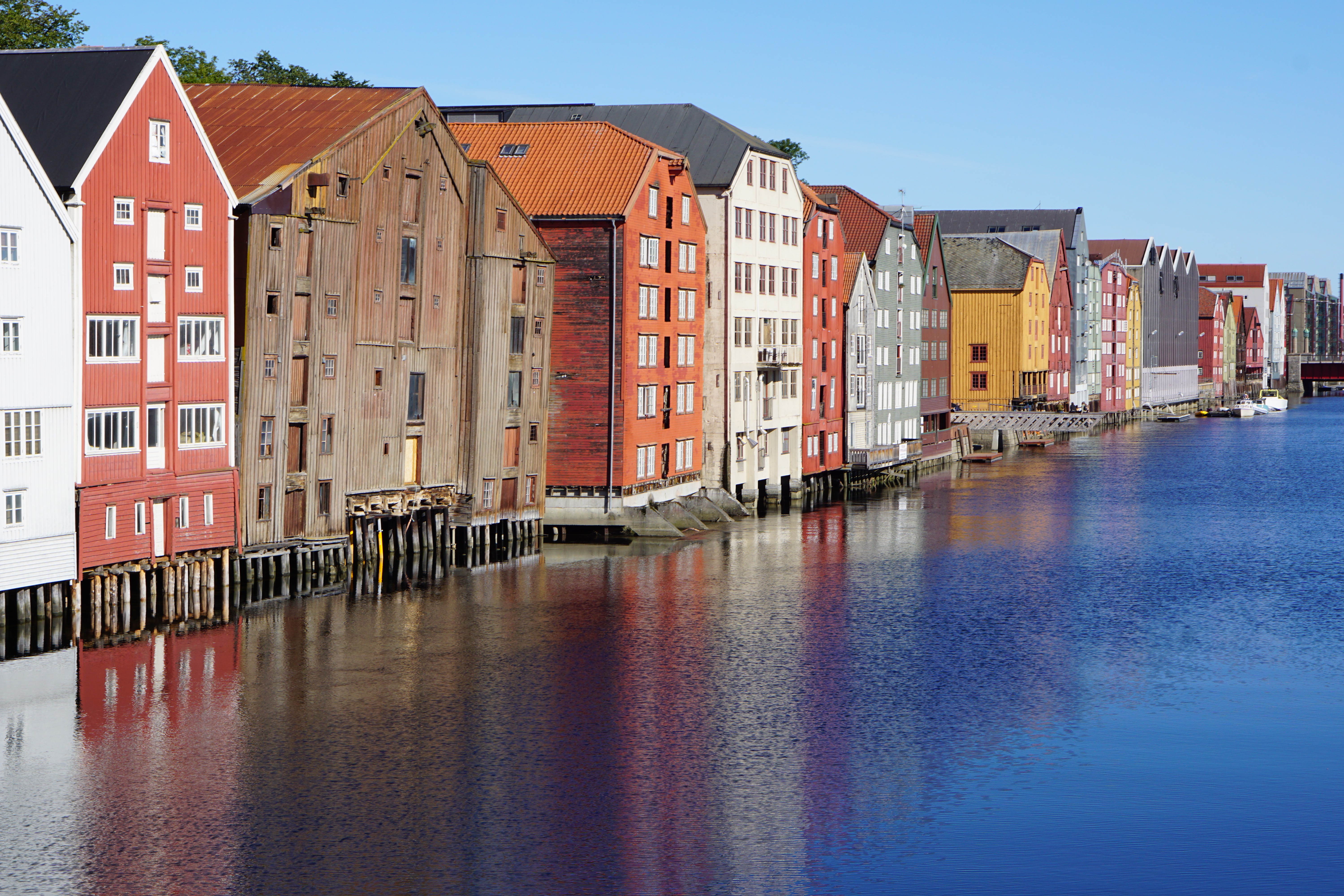 Die erste Fähre erreicht den Hafen direkt neben unserem Campingplatz um 9:30 Uhr, als wir schon lange wach waren. Es ist wieder herrliches Wetter. In der Hoffnung, heute nicht wieder in einen Marathon zu geraten, machen wir uns morgens auf, zurück nach Trondheim, um uns die Stadt anzuschauen. Im Gegensatz zum gestrigen Tag war die Innenstadt heute wie leer gefegt.