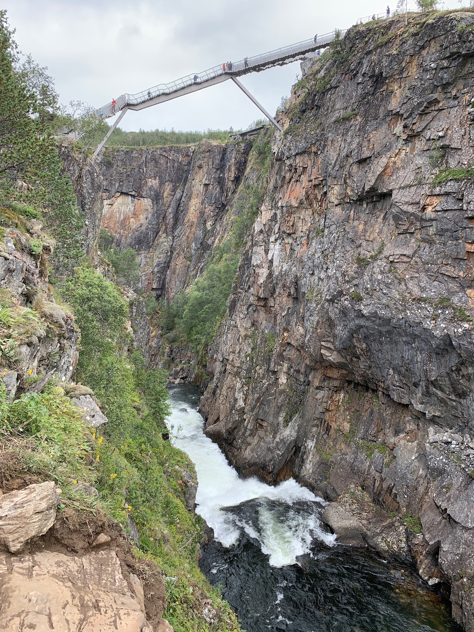 Die Brücke ist noch so neu, dass sich die Norweger noch gar nicht sicher sind ob sie denn nun gut ist, oder ob sie die Landschaft verschandelt. Auch wenn man das Gegenargument sicherlich verstehen kann, wollen wir jetzt sehen wie die Aussicht von dort oben ist.