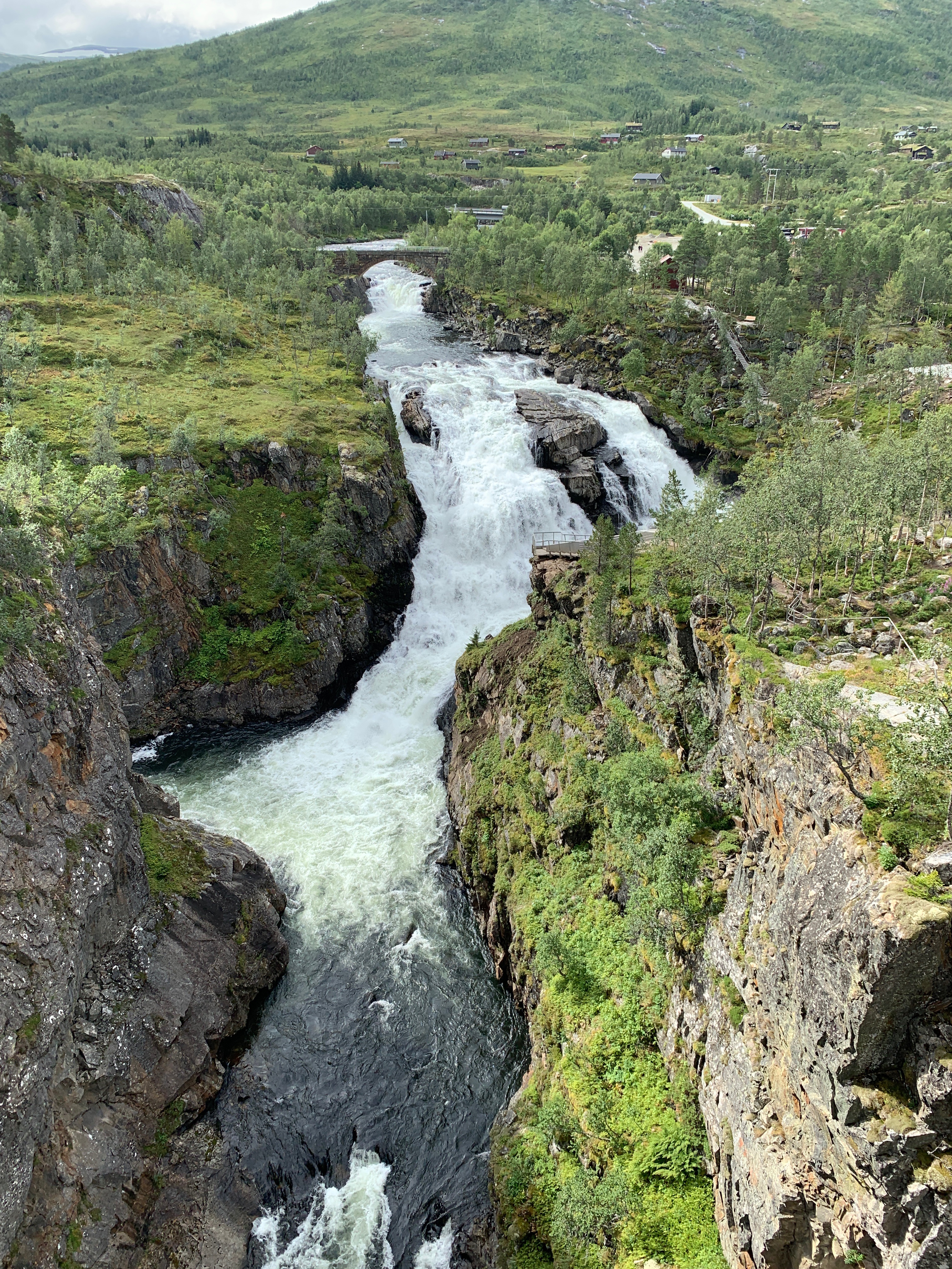 Nachdem der Wasserfall gestern bei der ganzen Familie für große Begeisterung gesorgt hat, besuchen wir heute einen weiteren. Der Vøringsfossen ist genau genommen sogar der Grund für unseren 4-tägigen Umweg zurück in den Süden.