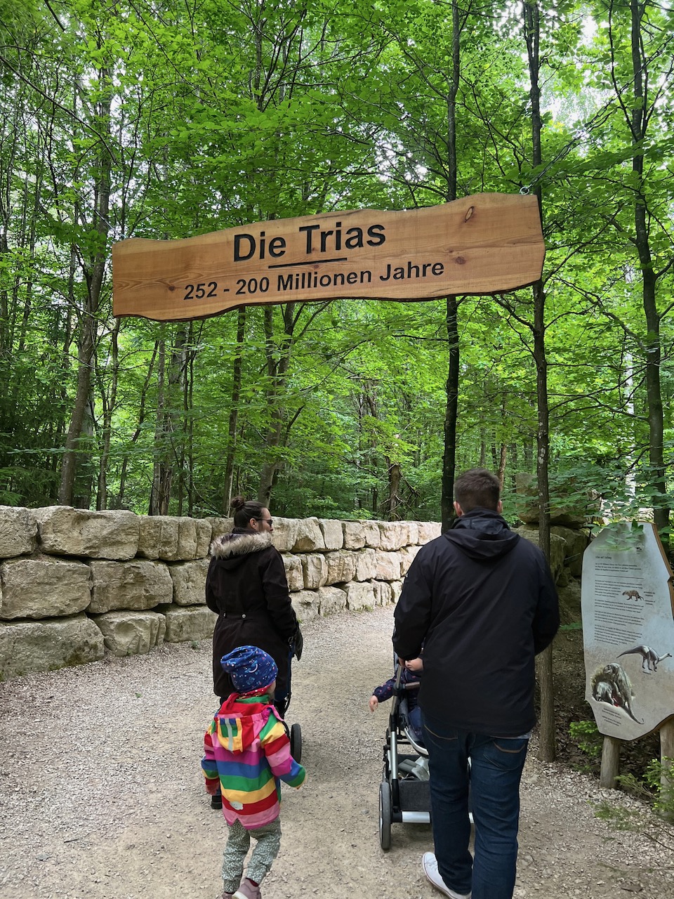 Der Park ist wirklich großartig. Durch einen Wald spaziert man durch die verschiedenen Erdzeitalter, mit einem Fokus auf das Mesozoikum, also der Zeit in der unsere Dinofreunde gelebt haben.