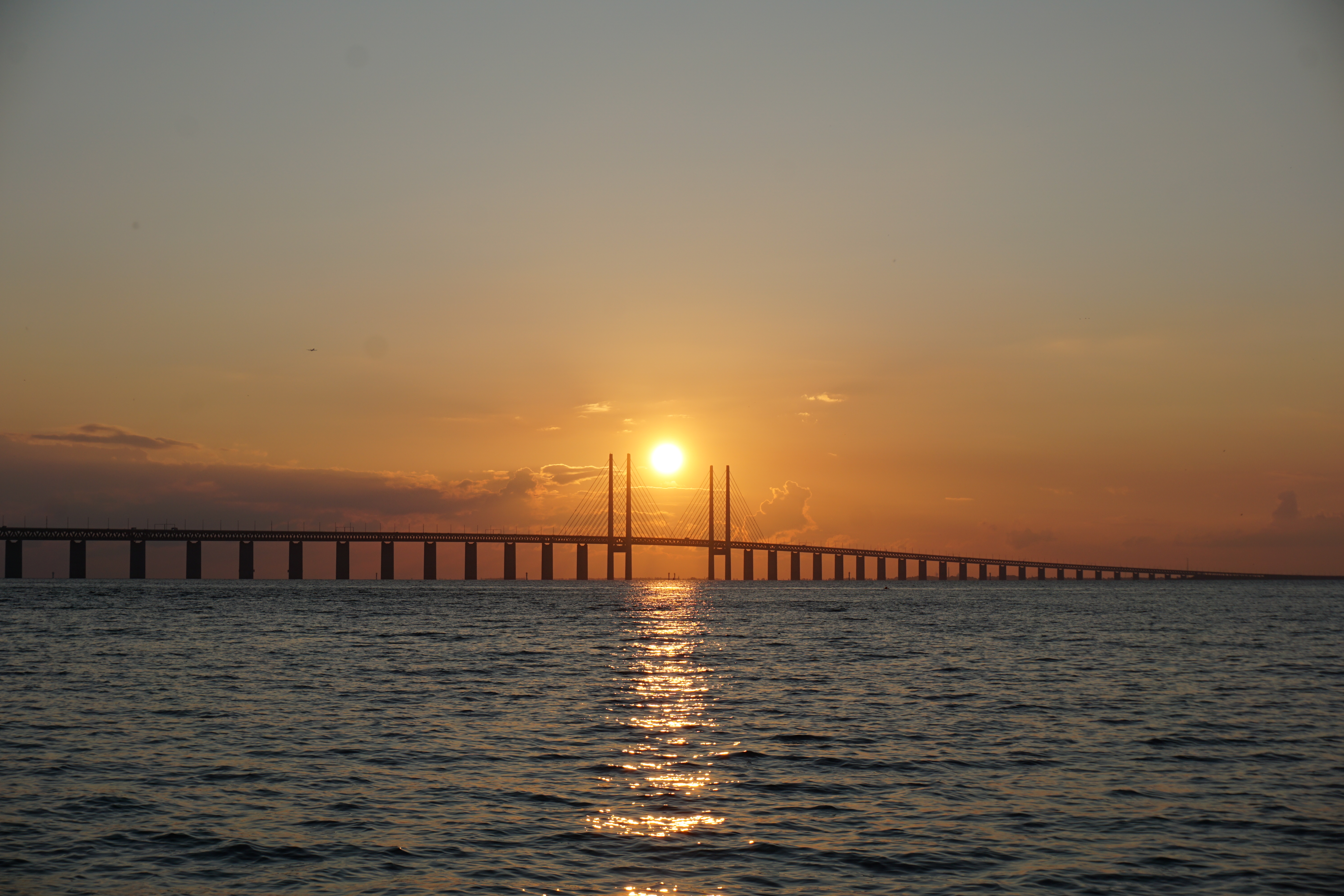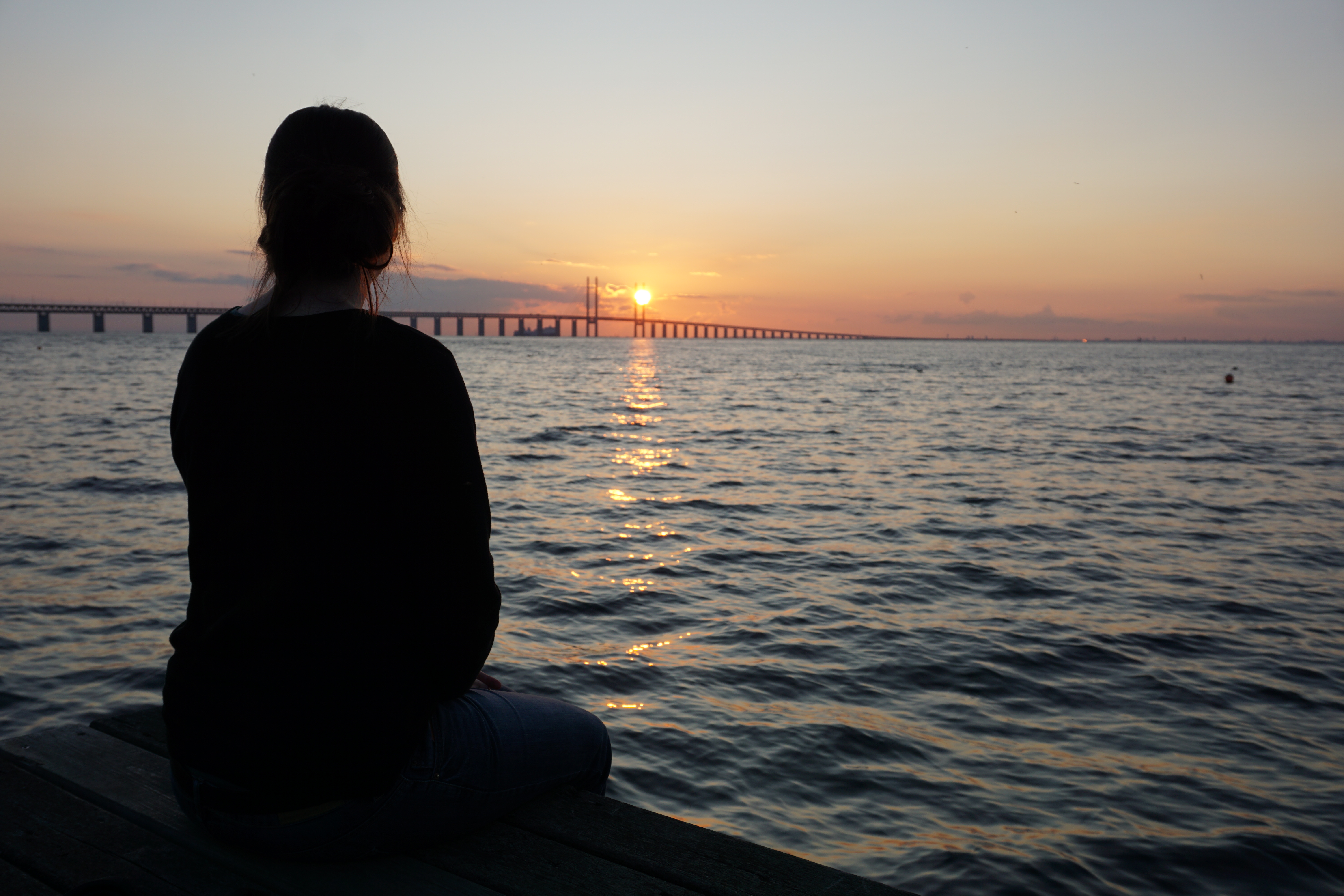 Bevor es soweit ist, genießen wir aber nochmal den Sonnenuntergang in Schweden mit Blick auf die Øresundbrücke.