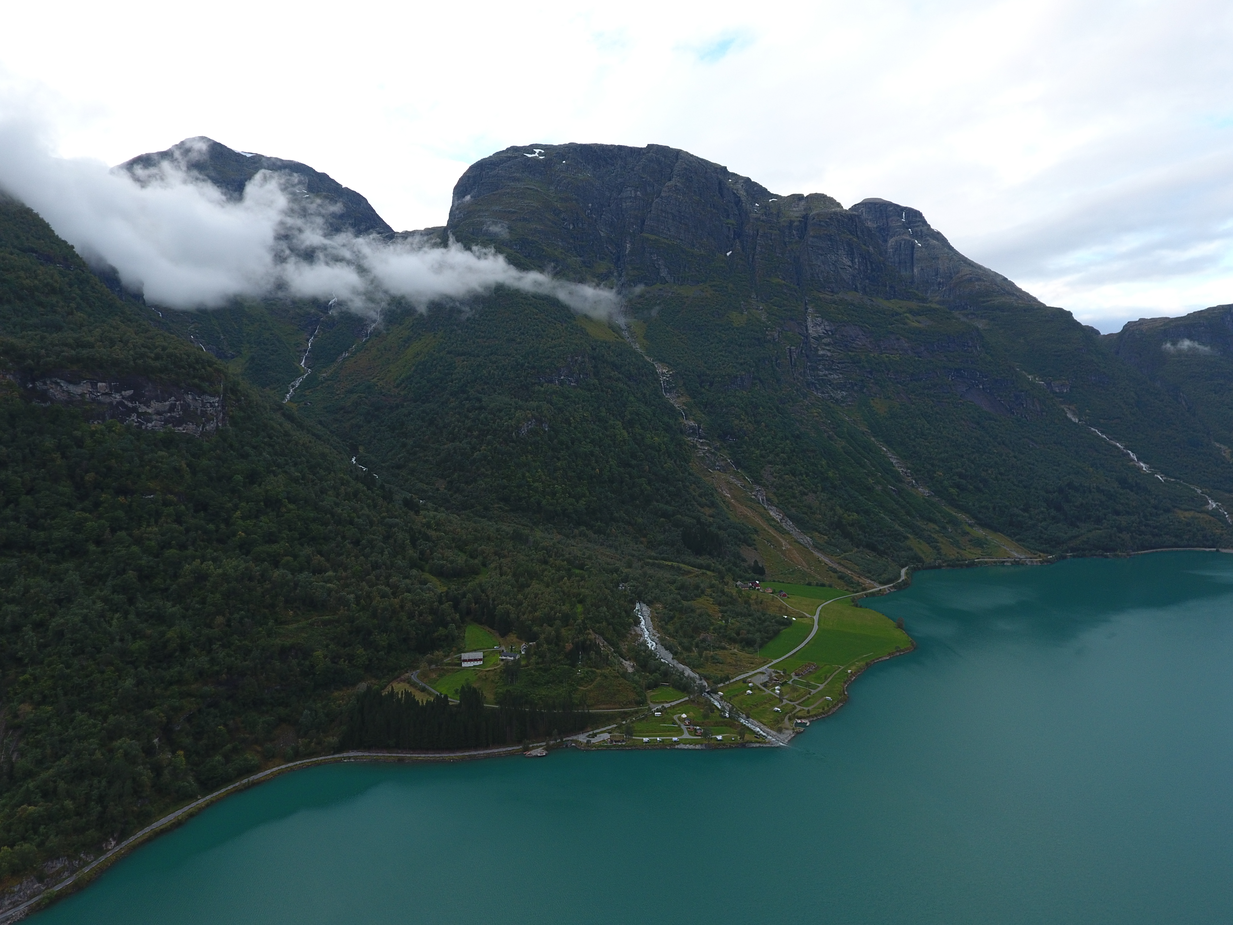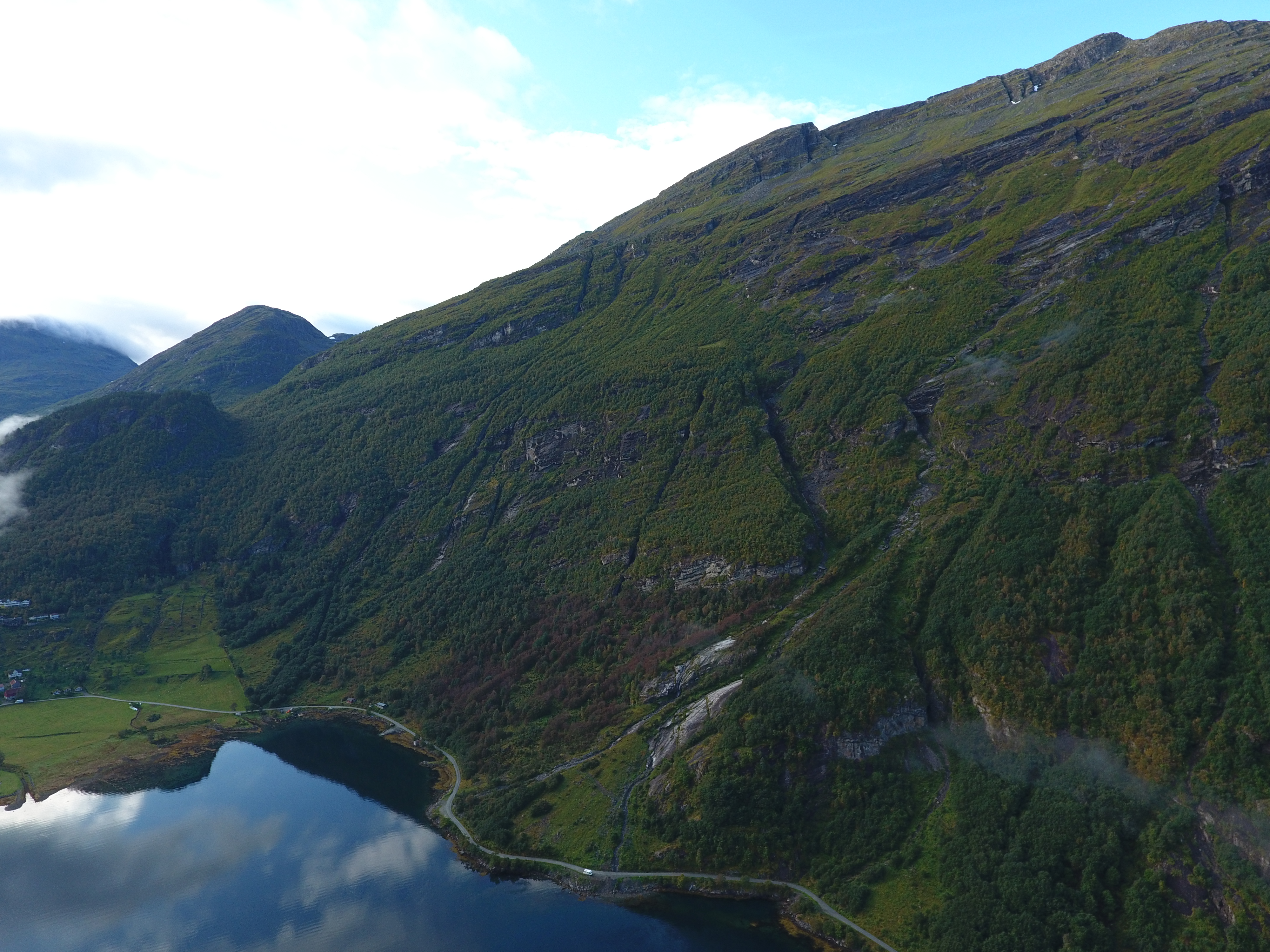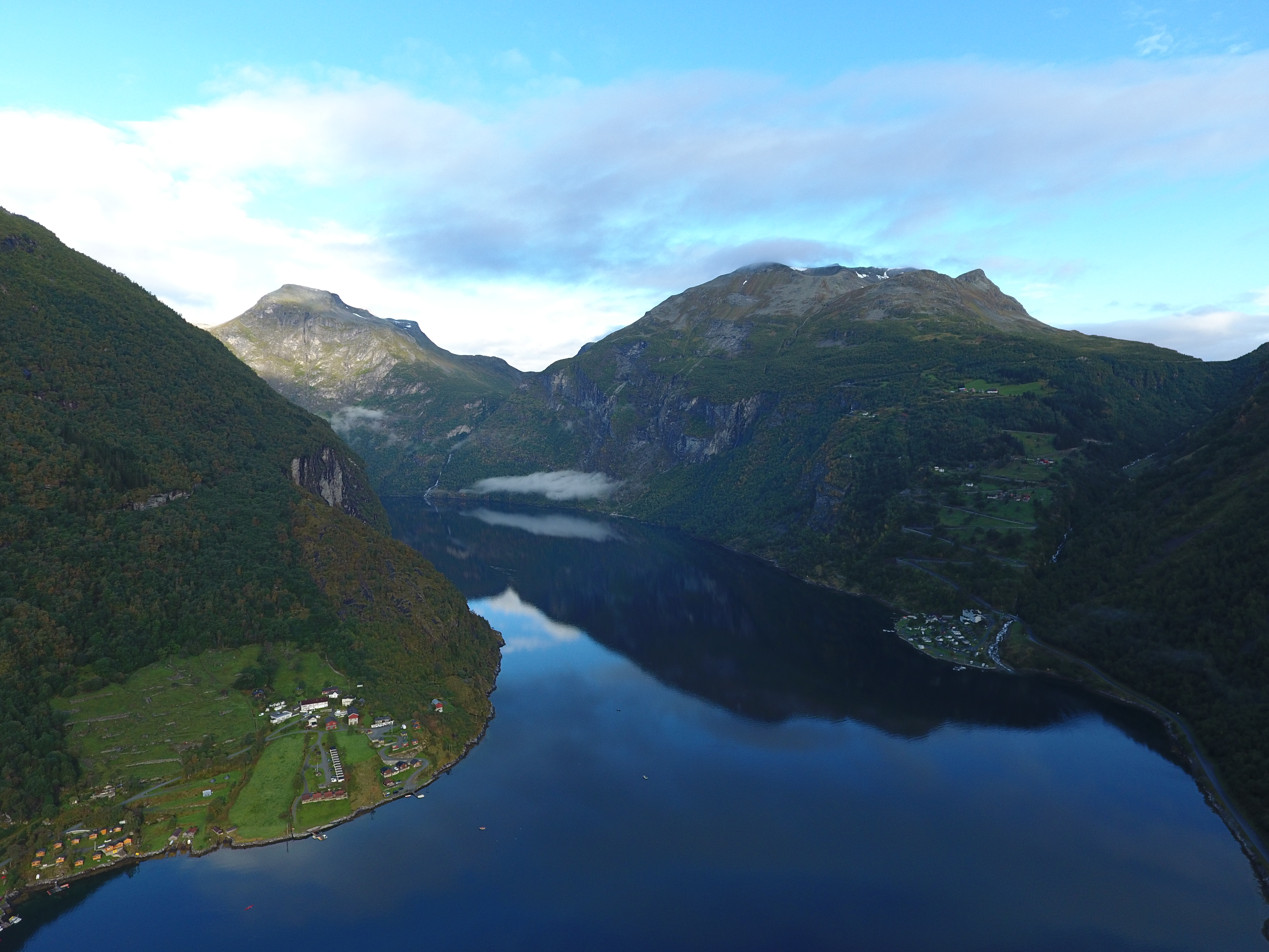 Angefangen hat der Tag in Geiranger. Aufgeweckt durch ein paar Sonnenstrahlen wird die Drohne startklar gemacht und startet in den Himmel.