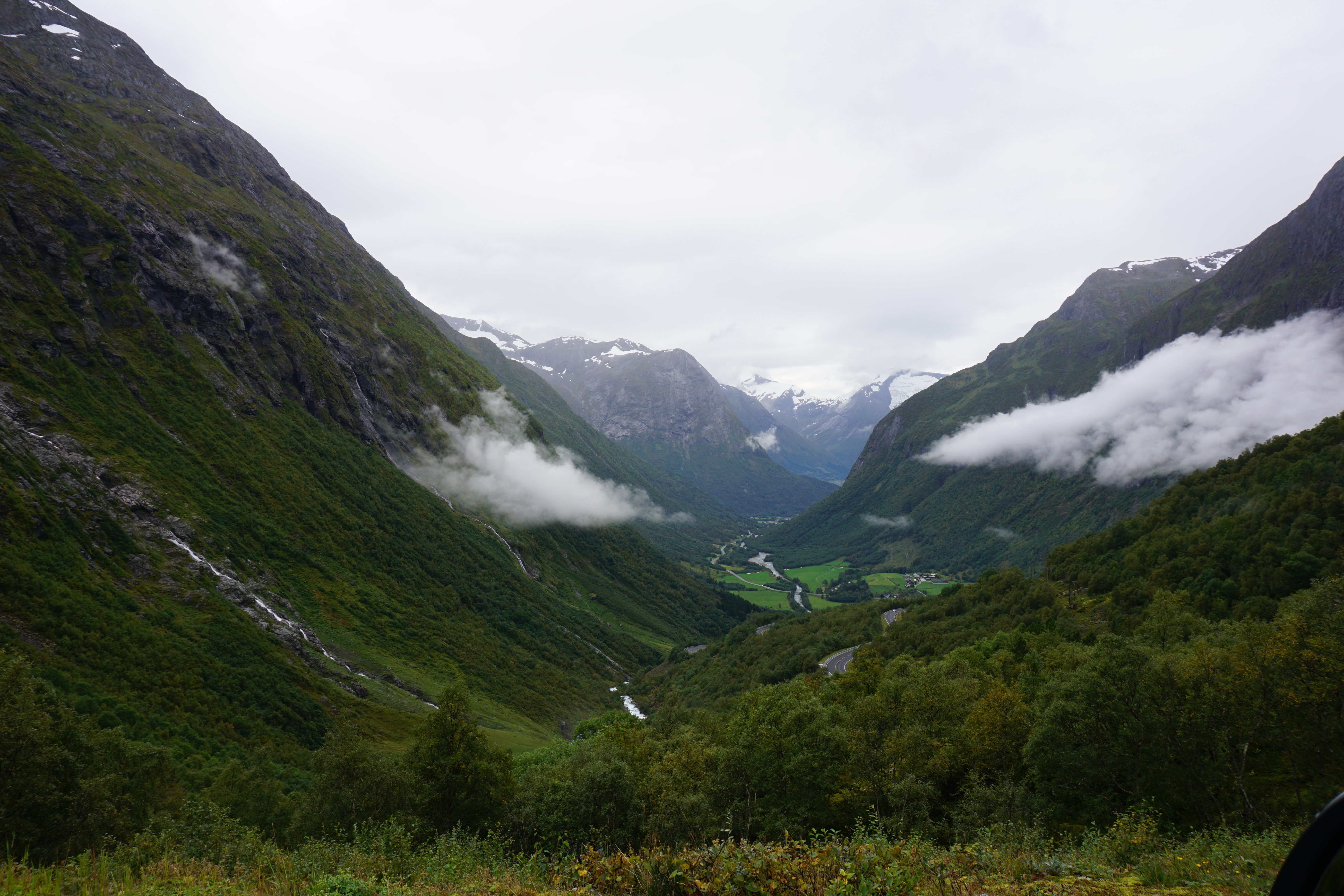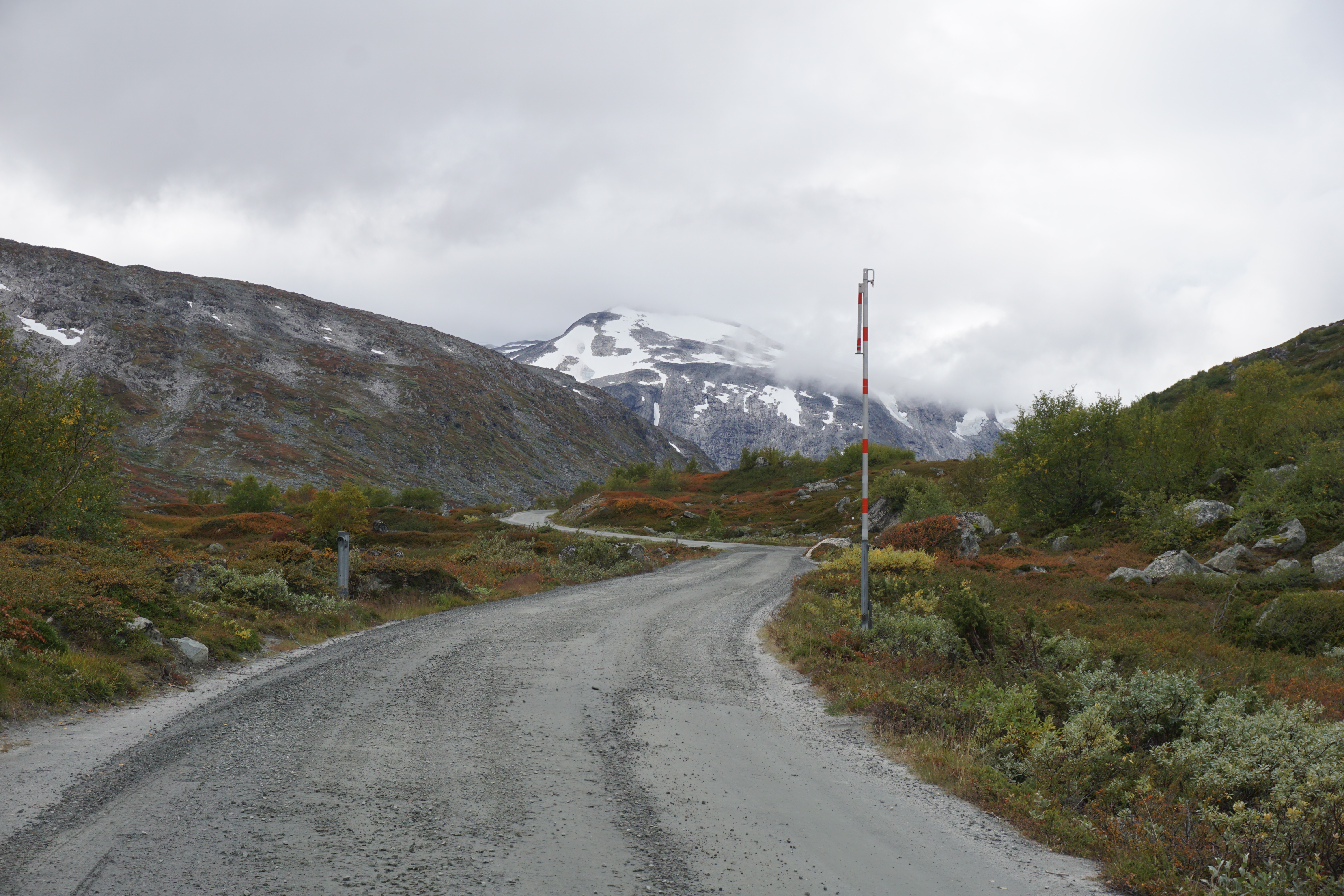 Zuerstmal ging es den Trollstigen, von dem wir ja gestern bereits gekommen sind, wieder hinauf. Doch diesmal fuhren wir nicht über die Tunnelstraße, sondern bogen links ab Richtung Grotli um so auf die Landschaftsroute "Gamle Strynefjellsvegen" zu gelangen. Es war wie das Tor in eine andere Welt. Sogar unser Navi warnte uns, dass die Straße saisonbedingt geschlossen sein kann..