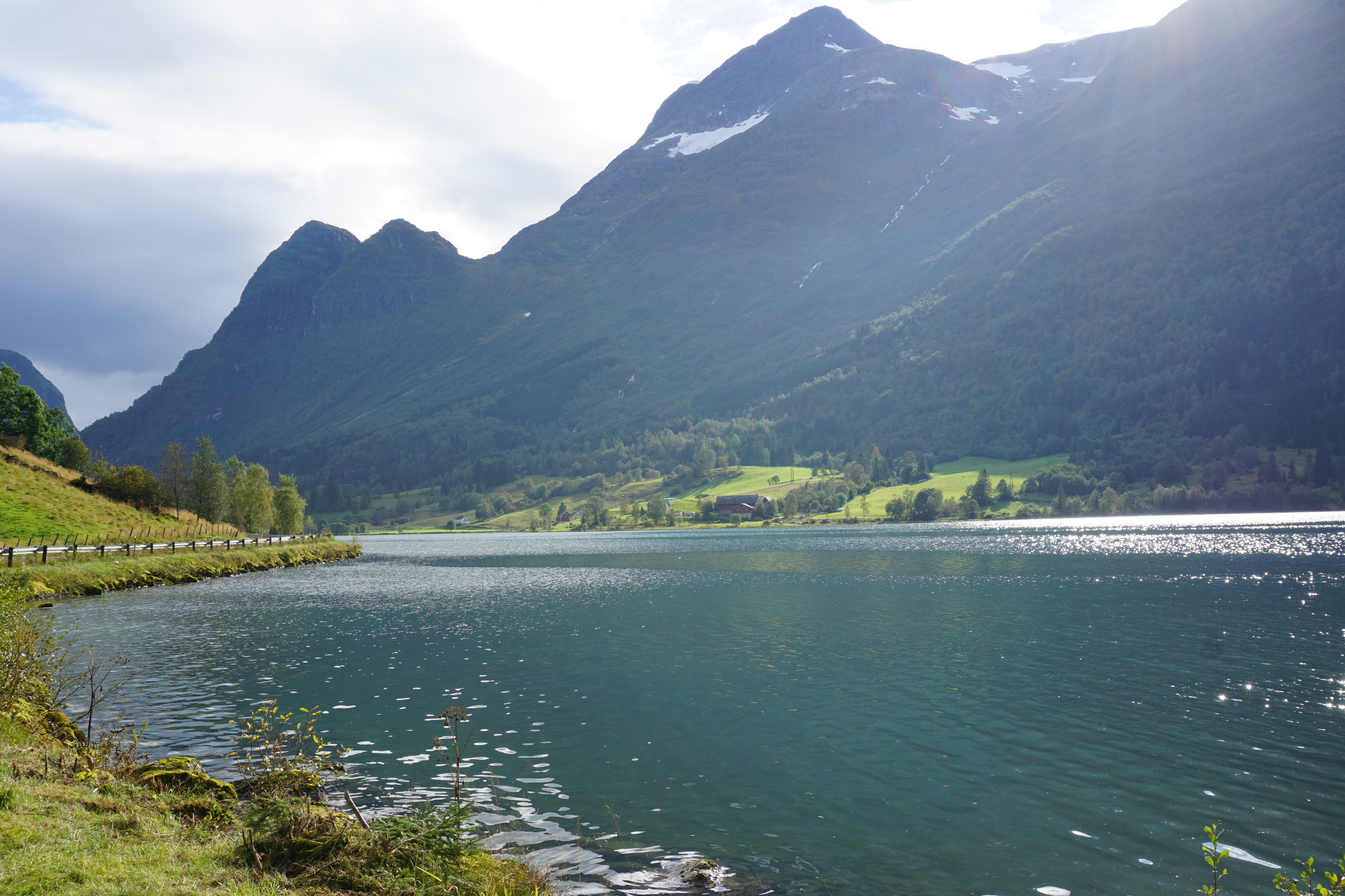 So fahren wir wieder entlang den Weg, den wir gestern gekommen sind, bis in den kleinen Ort Stryne, in dem wir dann zu unserem heutigen Ziel Olden abbiegen.