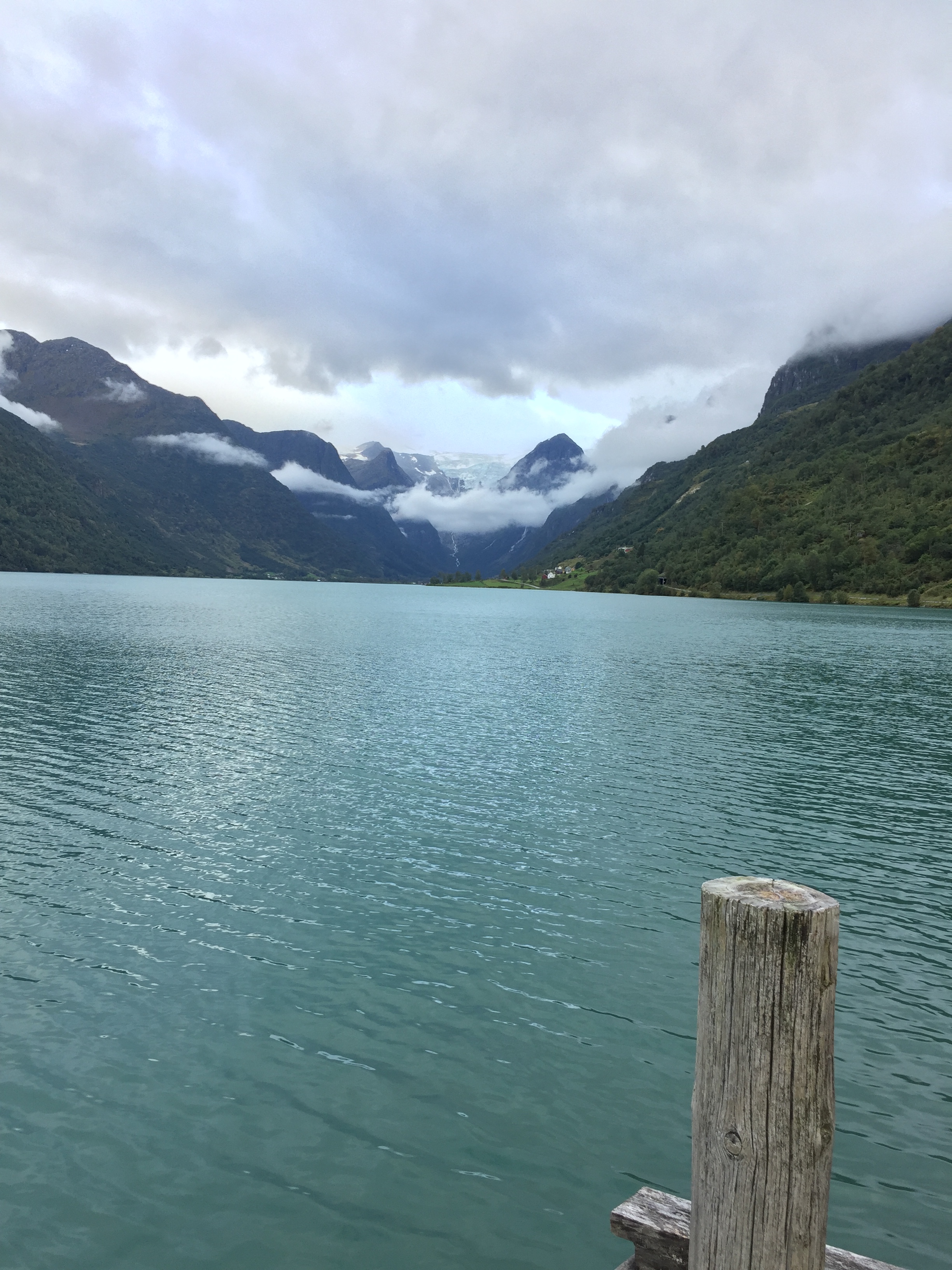 Und hier schlafen wir heute auf einem kleinen aber feinen Campingplatz mit Sicht auf den Briksdalsbren Gletscher, den wir morgen besuchen wollen: